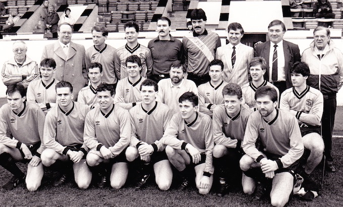 With Multipart withdrawing their sponsorship, the league reverted to the N.P.L. for 1987-88; but Southport’s season proved a huge disappointment. At the outset it threatened to surpass all that had gone before, since, by October 3rd, the club had won eight and drawn the other three of their opening eleven games, with a mere four goals conceded. Young Rob Sturgeon, whose father, the Liverpool comedian Bobby Kaye, was newly appointed vice-chairman, had developed into a commanding central defender and celebrated his moth N.P.L. game early in the season. Paul Lodge lent support in midfield after Peter King departed to Marine.