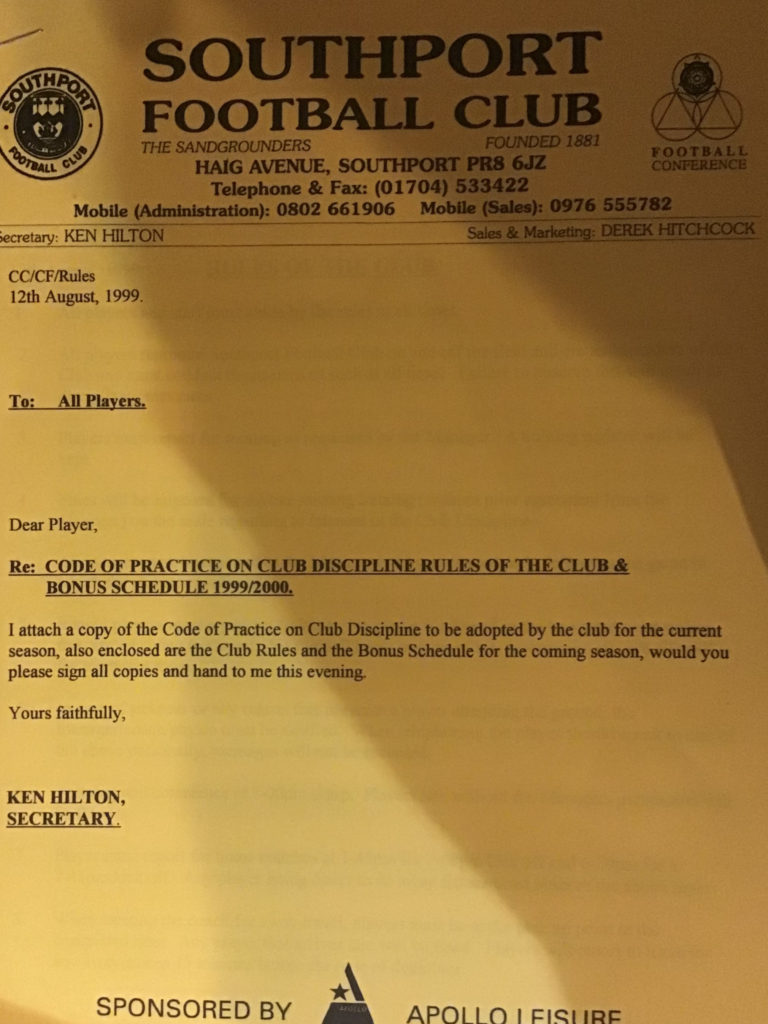A fascinating insight.. as issued to the players for the 1999/2000 season.
