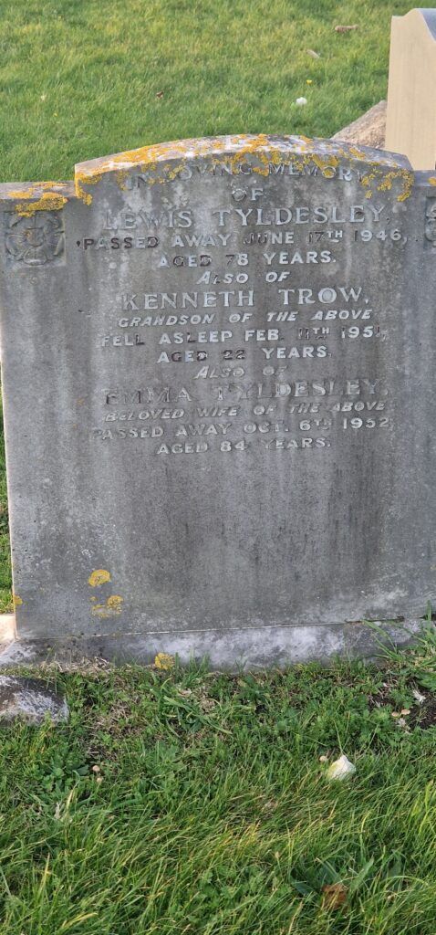 The grave of Lewis Tyldesley within section 21 of Duke Street Cemetery.