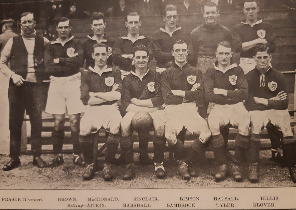 Southport Line-Up: Jack AllenJimmy BimsonHarry BeadlesAlbert BradleyJack NewnesGeorge SapsfordTed GloverTommy ‘Topping’ SinclairBilly ‘Salty’ HalsallTommy WhiteHarry Marshall,