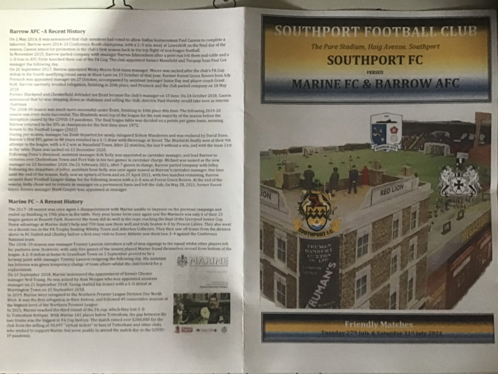 4sided colour issue to cover the friendly games v Marine (27.7.21) and Barrow (31.7.21)