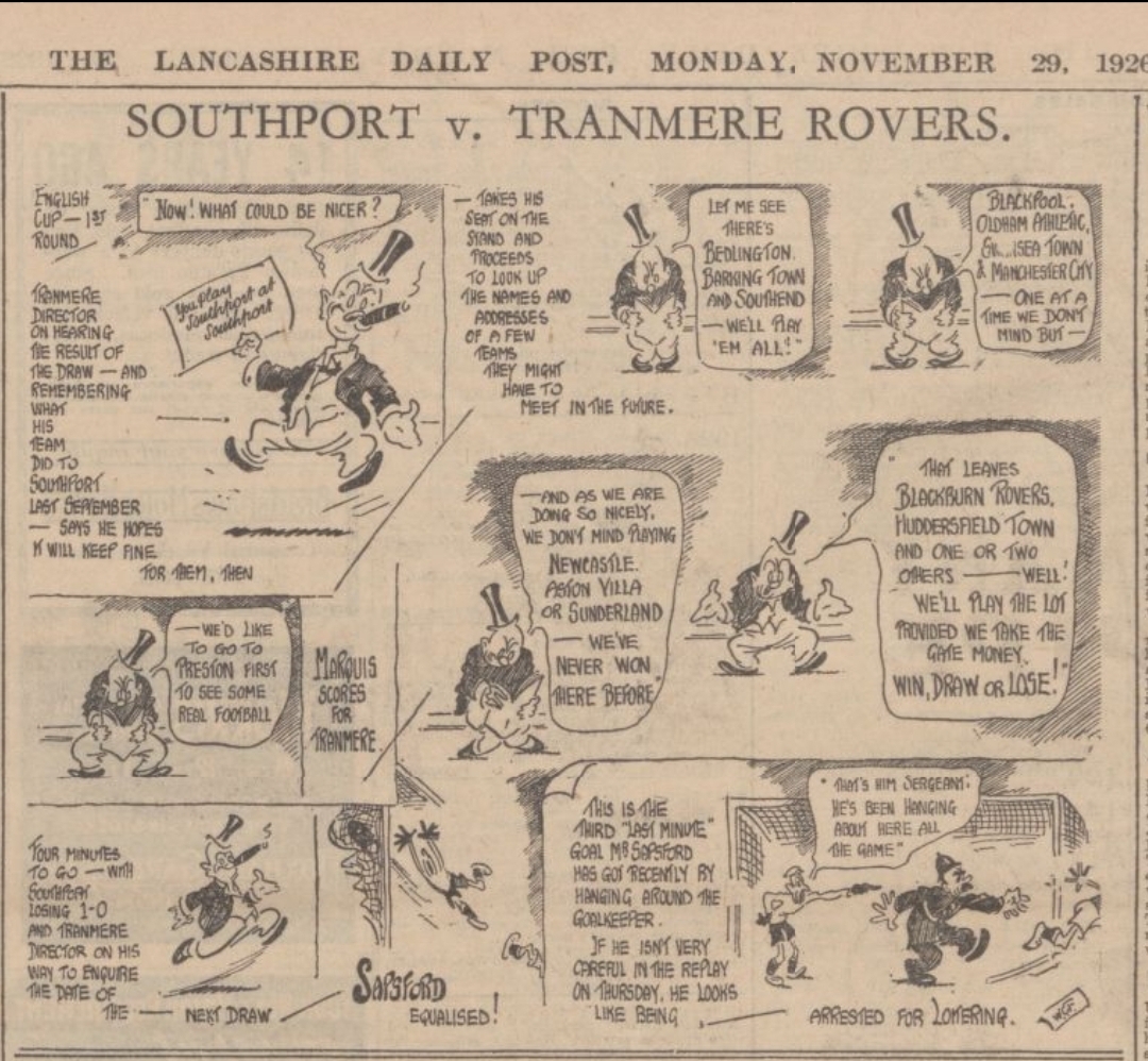 Southport failed to remove Tranmere Rovers from their path in the cup and now have to contemplate a visit to Tranmere on Thursday, where conceivably they will have a more severe task than they had on Saturday. In this sense, the failure of Allan to convert a penalty-kick in the second half had serious consequences. All the same, it would be a mistake to saddle the back with the responsibility for the replay, for those whose primary duty it is to score goals failed on several occasions, while Allan got through much excellent work in defence. It was simply one of those miscarriages of comparatively assured things which afflict others besides footballers. And, on the whole, Southport will not be minded, as the game went, to quarrel with the result, which was fairly reflective of the play.It was a clean match, fought in a sporting spirit, with not even so much vigour in its passages as might have been expected. Either side should have won had they been able to utilise their openings, but there was not that capacity to command or work the ball at close quarters sufficient to beat the defence. It was ballooned far too much and loosed much too readily. The football was not without its points and deep interest, but it lacked that touch of polish which makes all the difference between the proper finishing off of the approach work and its tame petering out before the goalmouth is reached. I thought that Southport, of the two, might have pulled through more easily, for their spells of attacking had in them greater menace, but it was a day of frustration, not fruition.—AN ERROR IN TACTICS.Yet that should not have been, at least, in such a degree. There were engaged in the match quite a number of First Division players, including two or three from the Liverpool clubs and two or three from North End. The influence of these men was seen, but only in patches. That was what prevented the football from rising to a higher and more consistent level. But then, they would not be in their present company if they retained all their old skill. At times, one saw Beadles make a move that recalled his Liverpool days; Jones once splashed an otherwise drab display with a vivid colour; Sapsford saved his side from defeat by a quickly taken goal not far from the end; Fred Marquis was the same industrious worker and really the most sustained in either attack that he was when at Deepdale; Yates came through with a tackle now and then in the old style; Cartman at intervals worked into position with a canny touch. But apart from Marquis, the flashes were intermittent, and truth to tell, I preferred the younger and less experienced members of both sides when it came to an analysis of the game as a whole.Where Southport failed was in tactics rather than temperament. They did not mould their game to the demands of their task. So long as the ball was put into the air, so long were the odds against them, simply because the other fellows had it in height. Especially did this suit the telescopic Matthews, Tranmere’s centre-half, who mastered Southport’s inside men by reason of the fact that he could take the ball on his head more easily and earlier than they could. If Tranmere are to be beaten on Thursday, different ideas will have to inform the football. But generally, the half-back play was too good for the forward, and although none of them quite reached Matthews’ power, Southport’s three were as useful a line as the other, in which the alertness of the red-headed Lewis was a feature, even if he wasted the ball a lot. White strikes me as having distinct possibilities, and Halsall, like Briggs, is a goalkeeper worth a place in any side.
