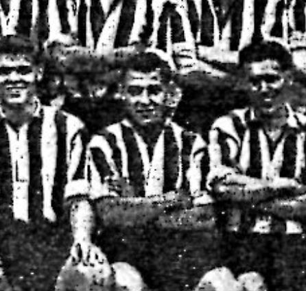 Dennis is pictured above in the 1953-54 Probables v Possibles pre-season match at Haig Avenue, front row, third from the right.