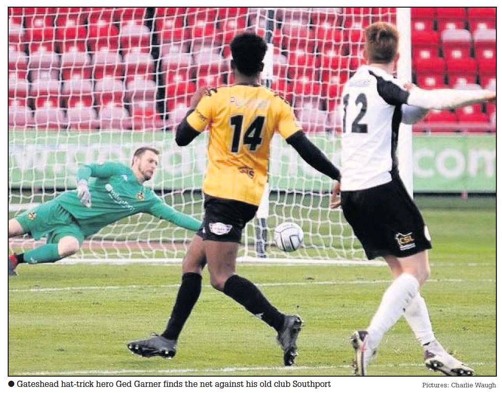 Our last match with Gateshead was at the International stadium in November 2020. The result, although officially scratched from the record books due to the curtailment and cancellation of the League was a 1-4 defeat for Southport, behind closed doors. It was in fact a former player in Ged Garner, a loanee from Fleetwood, who inflicted most of the damage with a 10 minute hat-trick, putting an end to an unbeaten start away from home for the Sandgrounders